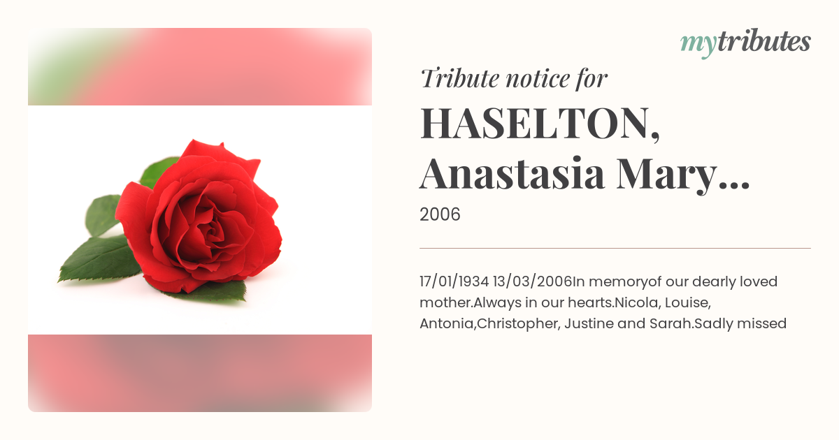 HASELTON, Anastasia Mary (nee Hutchesson)