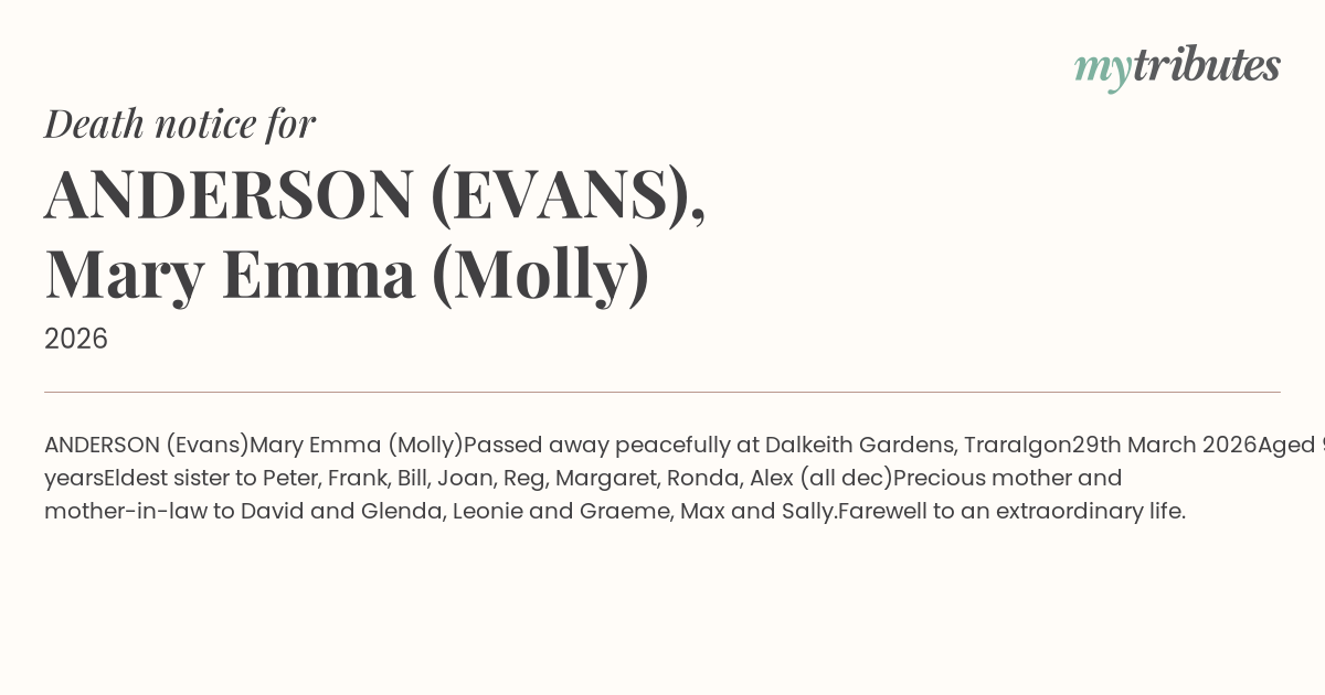 Passed away peacefully at Dalkeith Gardens, Traralgon