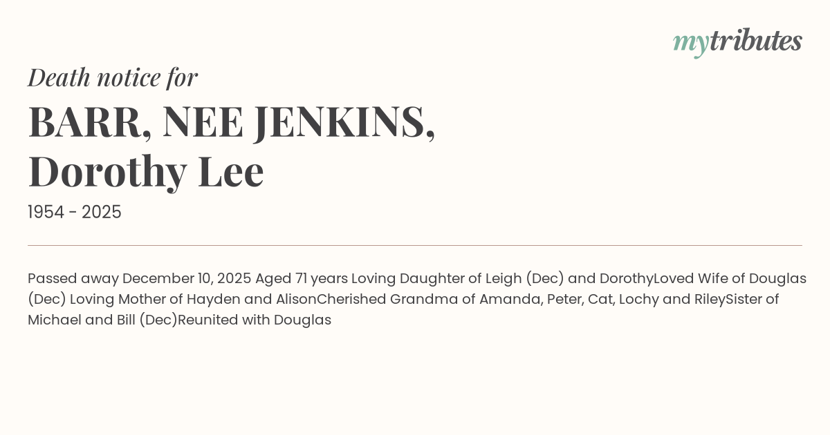 Cherished Grandma of Amanda, Peter, Cat, Lochy and Riley