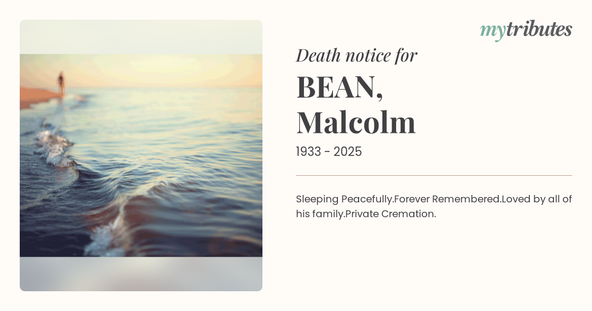 Sleeping Peacefully.Forever Remembered.Loved by all of his family.Private Cremation.