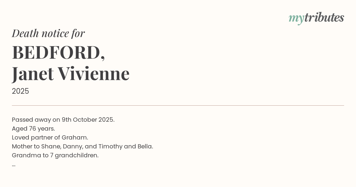 Special thank you to Restvale Aged Care for their love, care and support given to Janet.