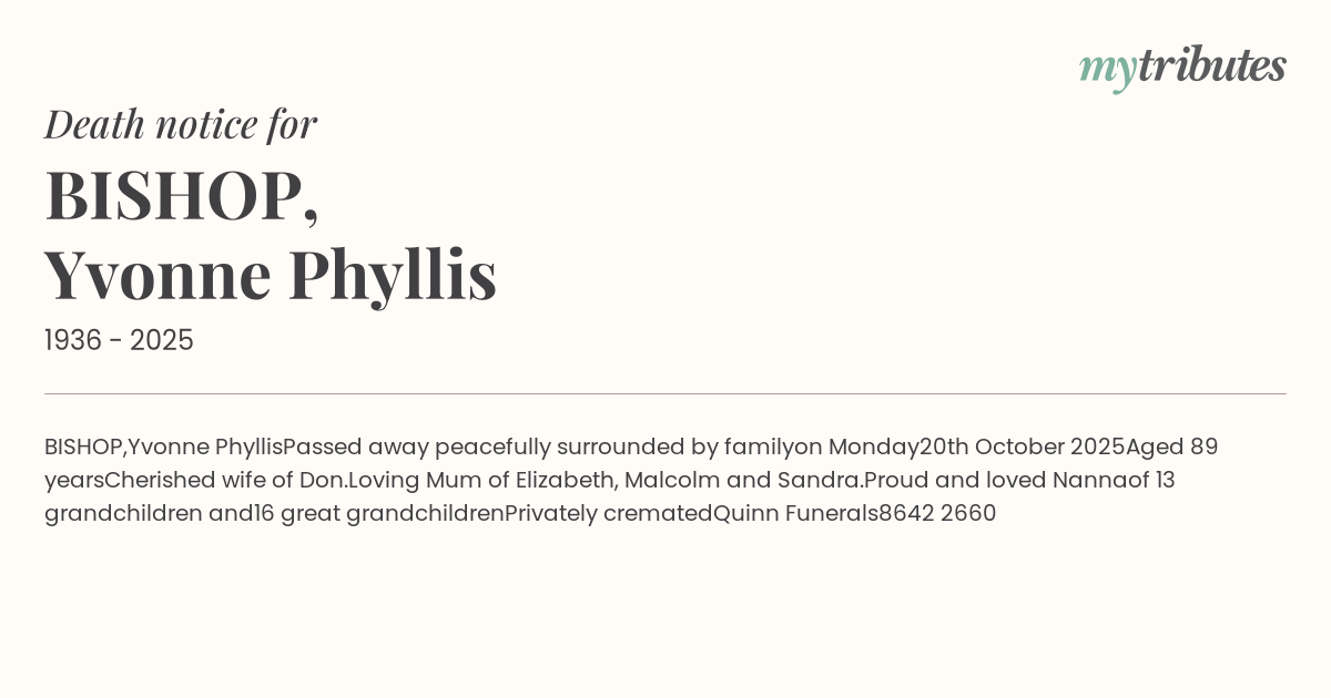 Loving Mum of Elizabeth, Malcolm and Sandra.