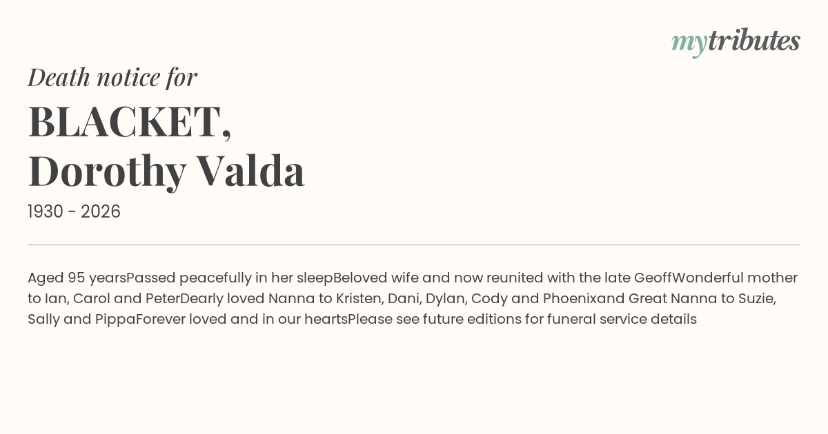 Dearly loved Nanna to Kristen, Dani, Dylan, Cody and Phoenix