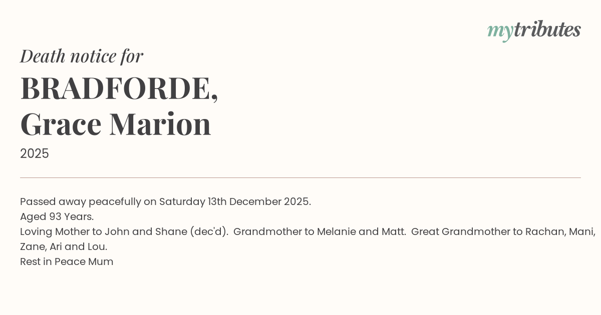 15°CPassed away peacefully on Saturday 13th December 2025.