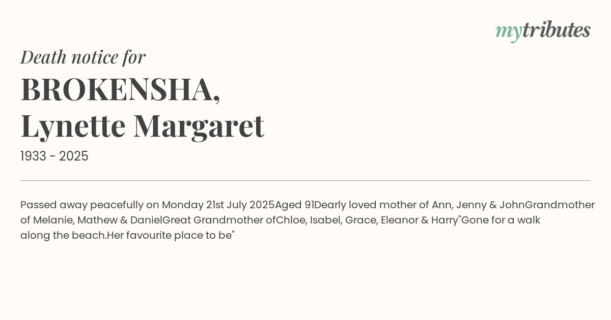 15°CPassed away peacefully on Monday 21st July 2025
