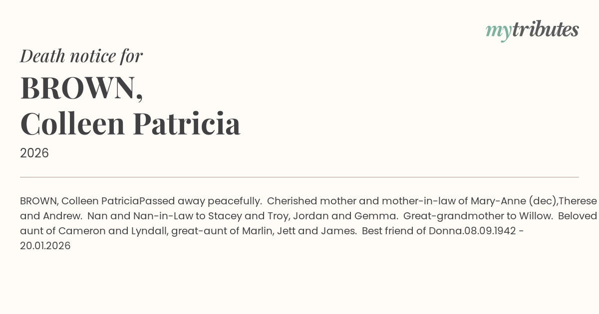 Passed away peacefully. Cherished mother and mother-in-law of