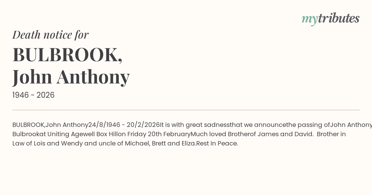 John Anthony Bulbrook