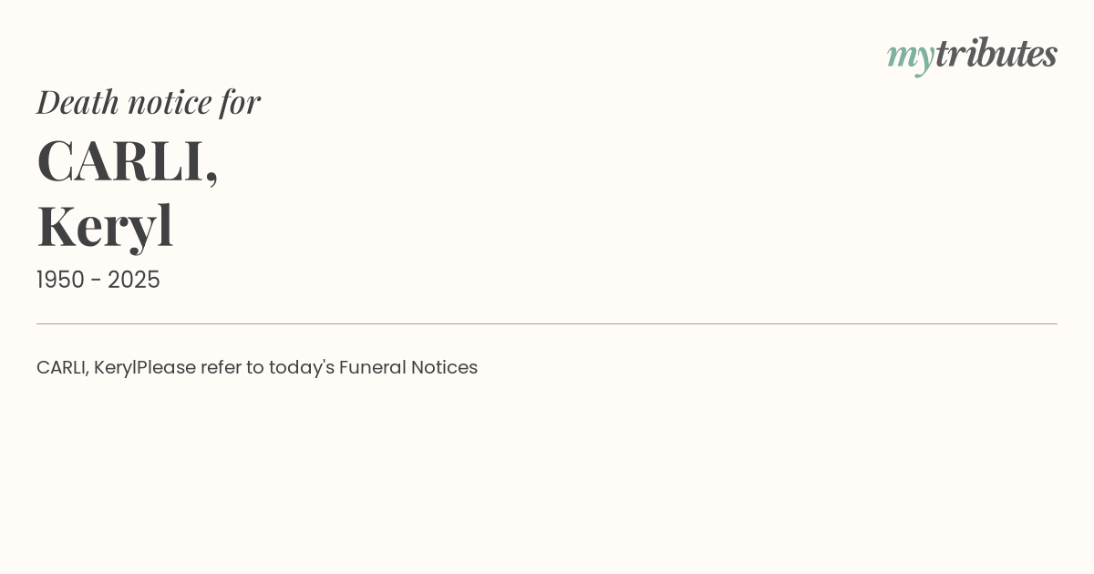 Please refer to today's Funeral Notices