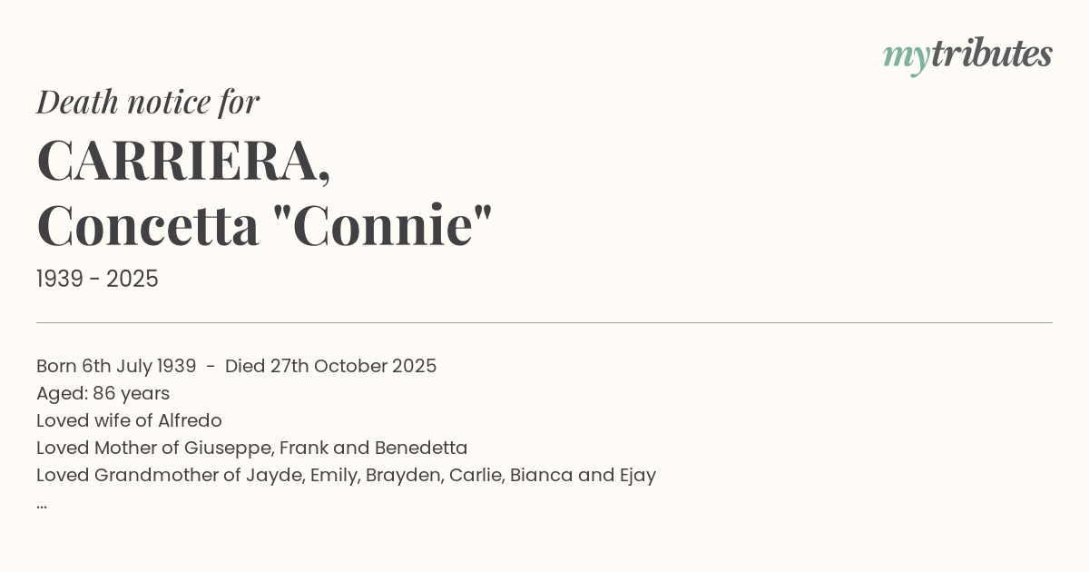 15°CBorn 6th July 1939 - Died 27th October 2025