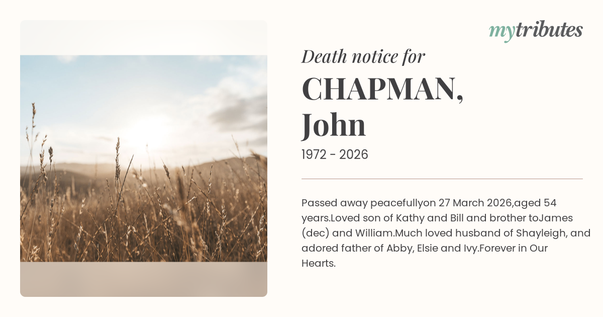 Much loved husband of Shayleigh, and adored father of Abby, Elsie and Ivy.