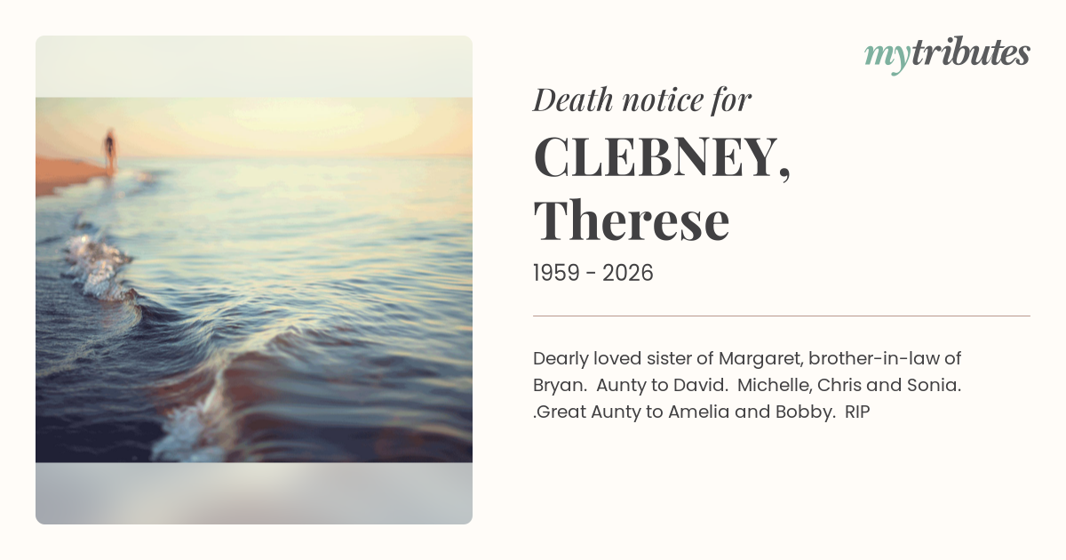 15°CDearly loved sister of Margaret, brother-in-law of Bryan. Aunty to David. Michelle, Chris and Sonia. .Great Aunty to Amelia and Bobby. RIP