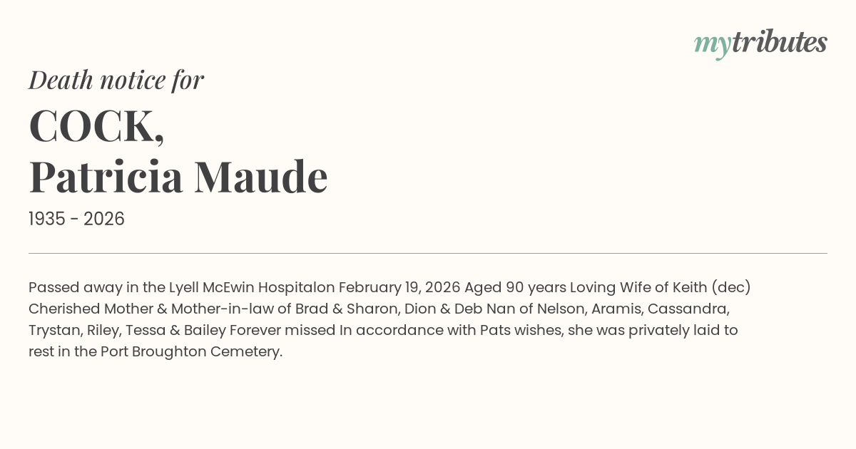 In accordance with Pat’s wishes, she was privately laid to rest in the Port Broughton Cemetery.