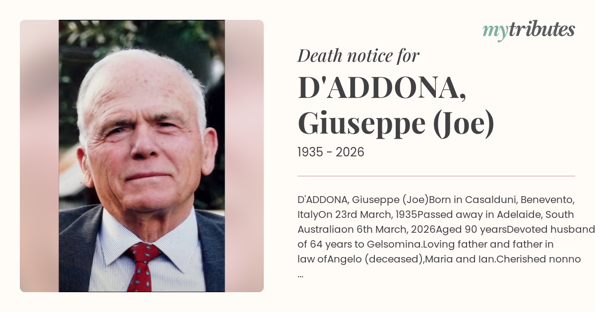 Loved and remembered by all his brothers, sisters, family, relatives, friends and his community in Australia and Italy.