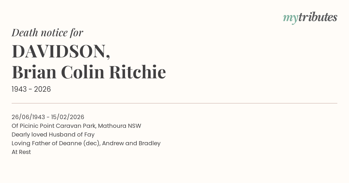 Loving Father of Deanne (dec), Andrew and Bradley