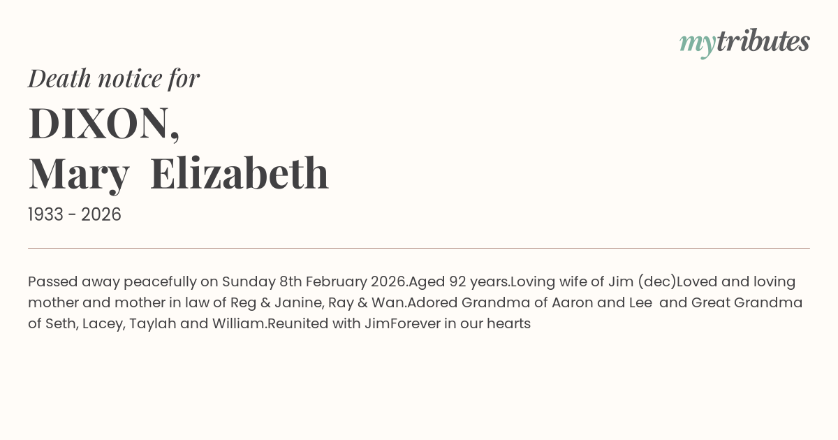 15°CPassed away peacefully on Sunday 8th February 2026.
