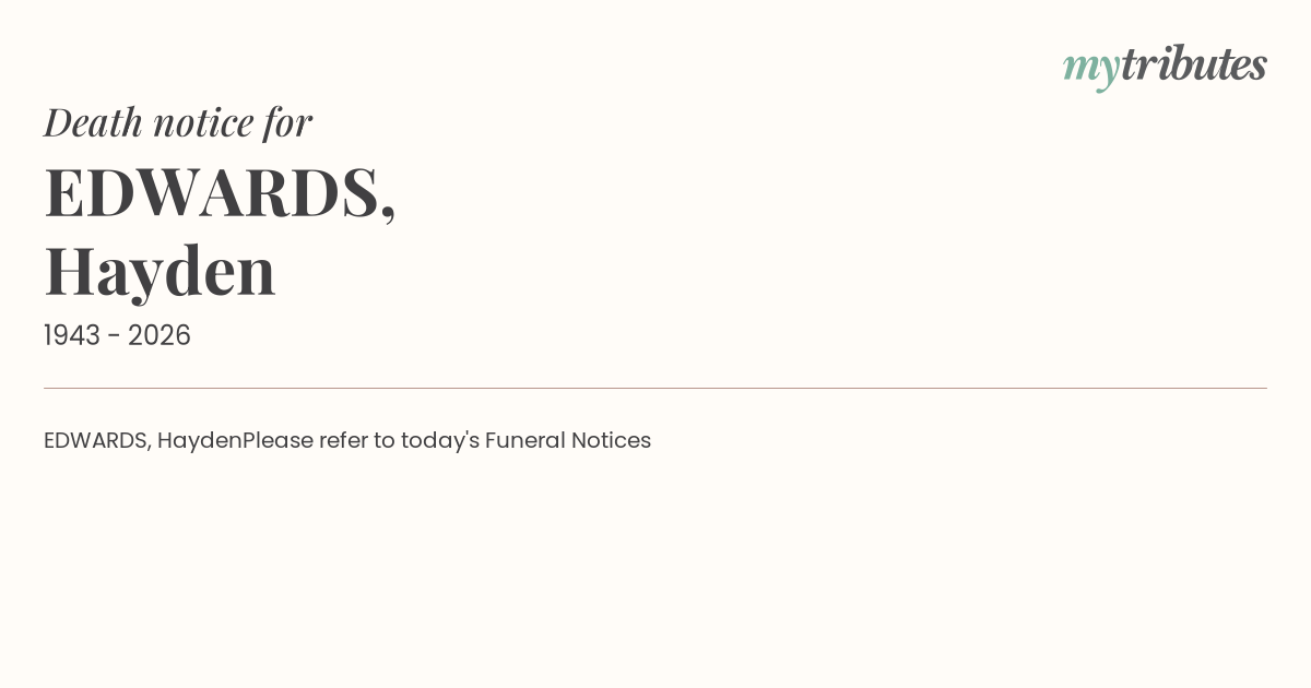 Please refer to today's Funeral Notices