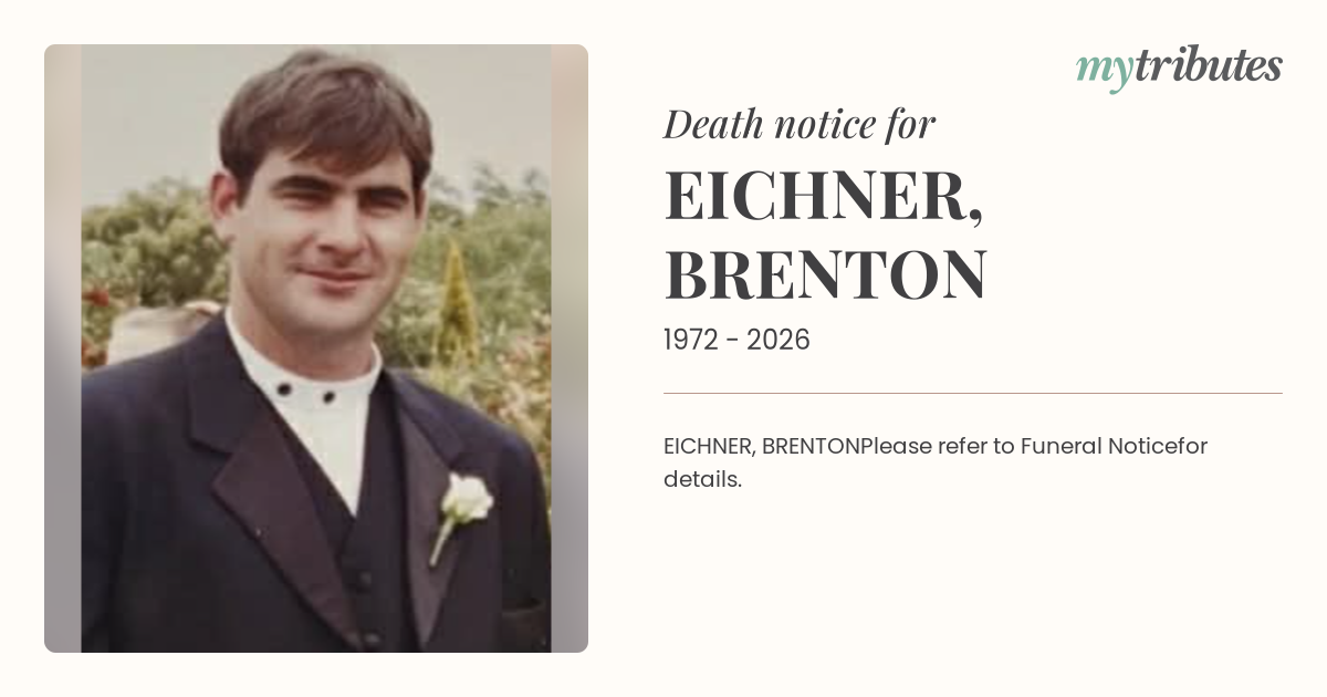 EICHNER, BRENTONPlease refer to Funeral Noticefor details.