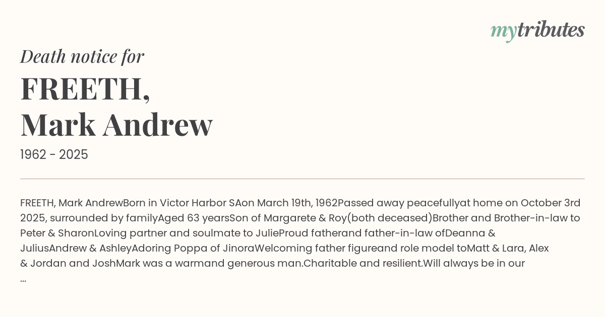 15°CFREETH, Mark Andrew