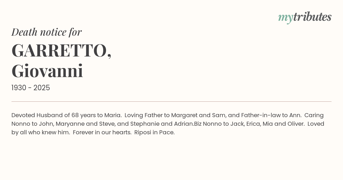 Caring Nonno to John, Maryanne and Steve, and Stephanie and Adrian.
