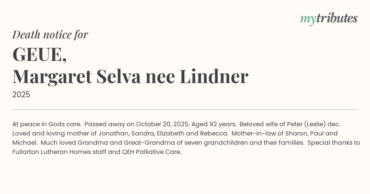 Special thanks to Fullarton Lutheran Homes staff and QEH Palliative Care.