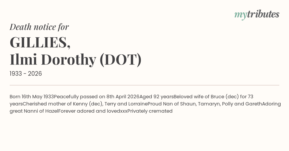 Peacefully passed on 8th April 2026