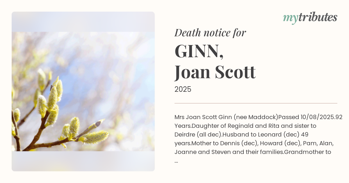15°CMrs Joan Scott Ginn (nee Maddock)