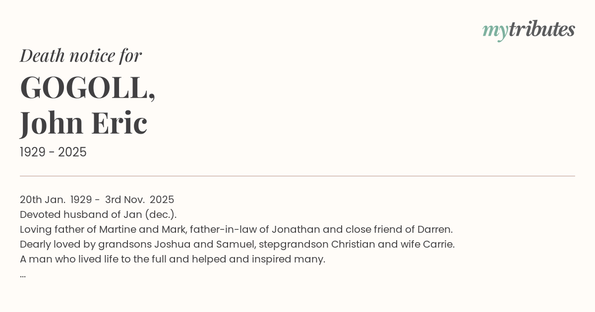 Loving father of Martine and Mark, father-in-law of Jonathan and close friend of Darren.