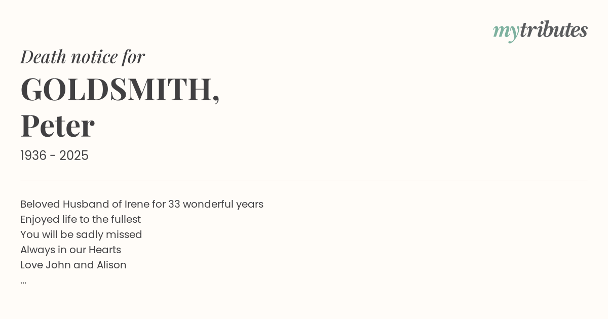 15°CBeloved Husband of Irene for 33 wonderful years