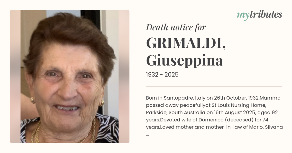 Our mamma will be remembered and loved by all her relatives and friends in Australia, Italy and France.