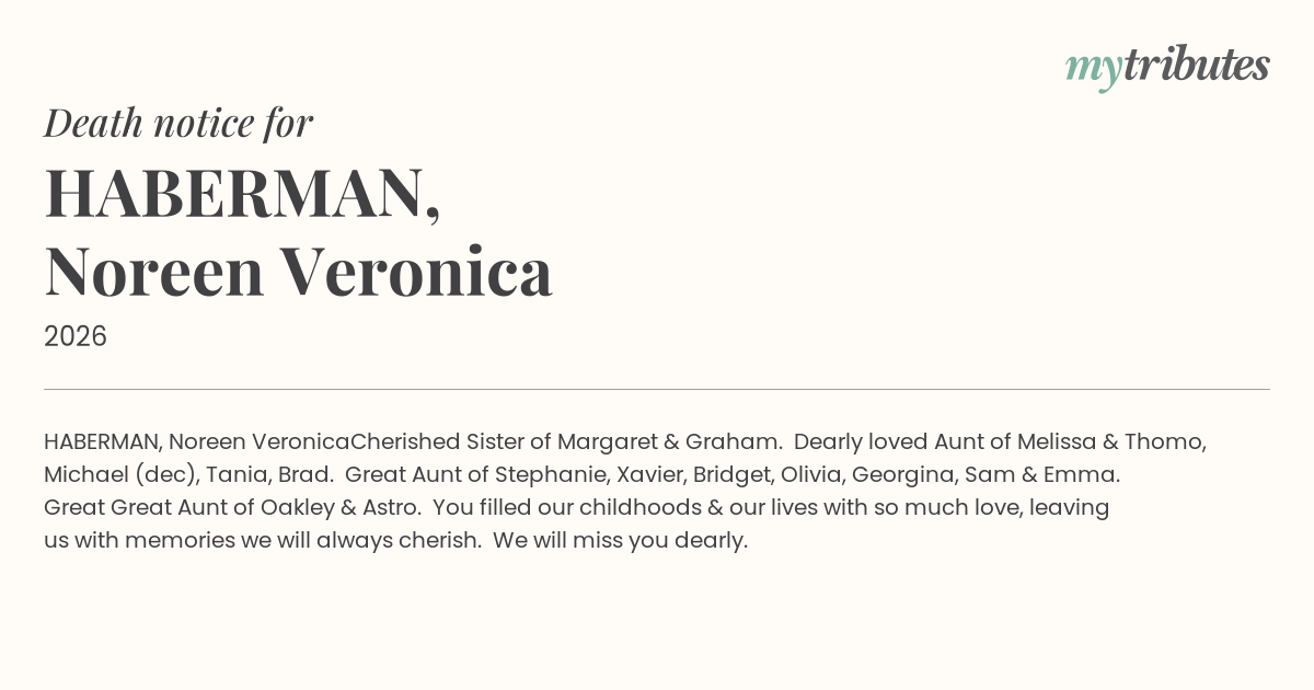 Cherished Sister of Margaret & Graham. Dearly loved Aunt of Melissa & Thomo,