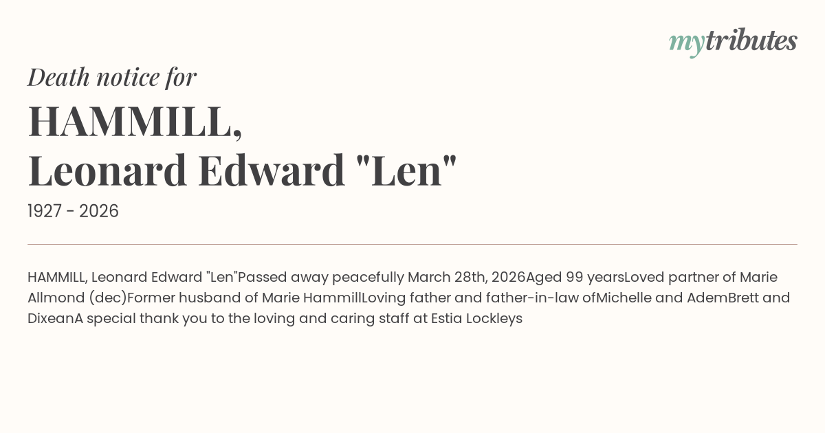 Passed away peacefully March 28th, 2026