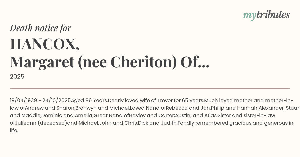Aged 86 Years.