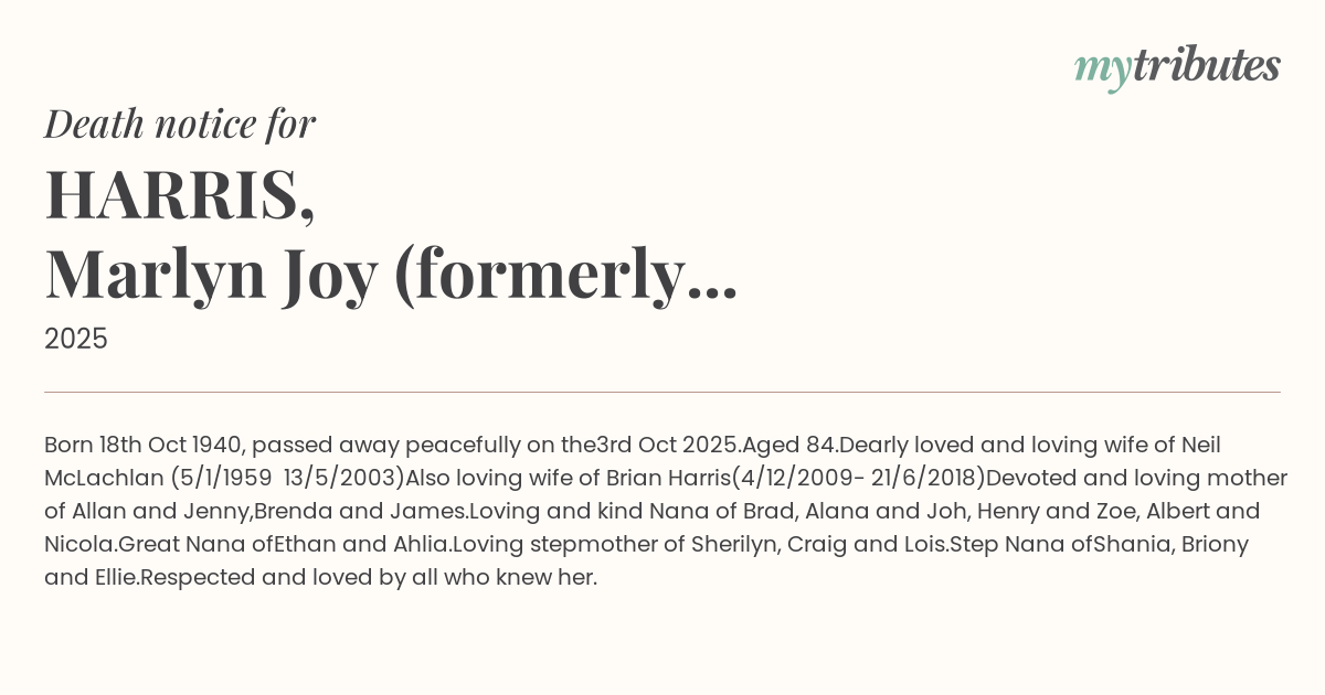 Dearly loved and loving wife of Neil McLachlan (5/1/1959 – 13/5/2003)