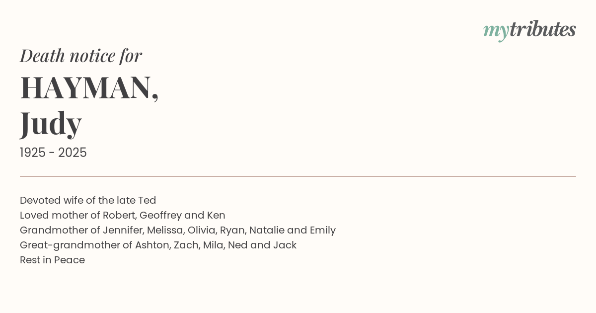 Loved mother of Robert, Geoffrey and Ken