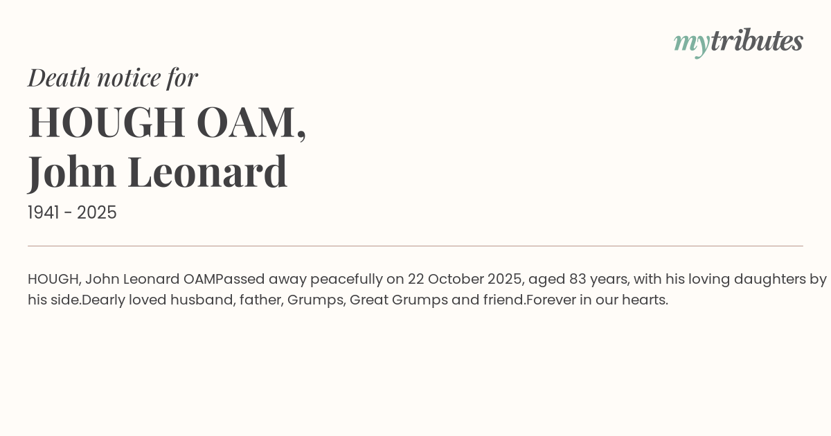 Dearly loved husband, father, Grumps, Great Grumps and friend.