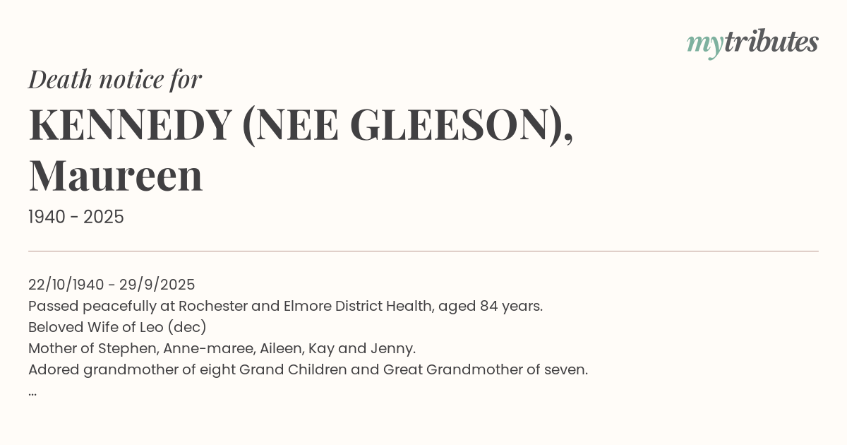 Passed peacefully at Rochester and Elmore District Health, aged 84 years.