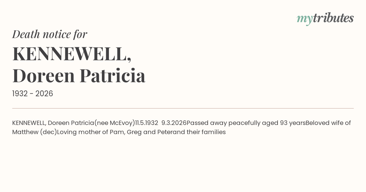 15°CKENNEWELL, Doreen Patricia