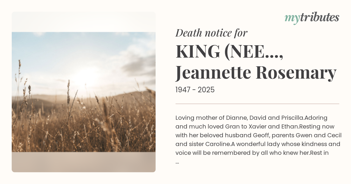 Resting now with her beloved husband Geoff, parents Gwen and Cecil and sister Caroline.
