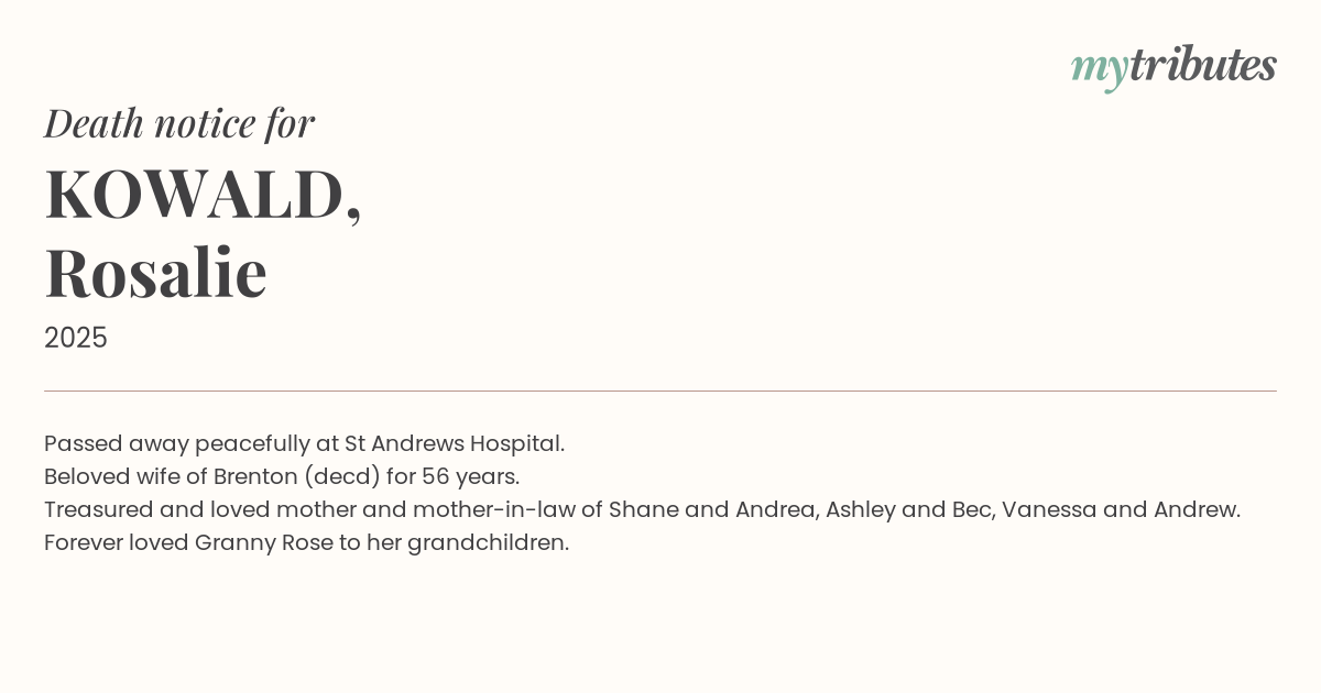 15°CPassed away peacefully at St Andrews Hospital.