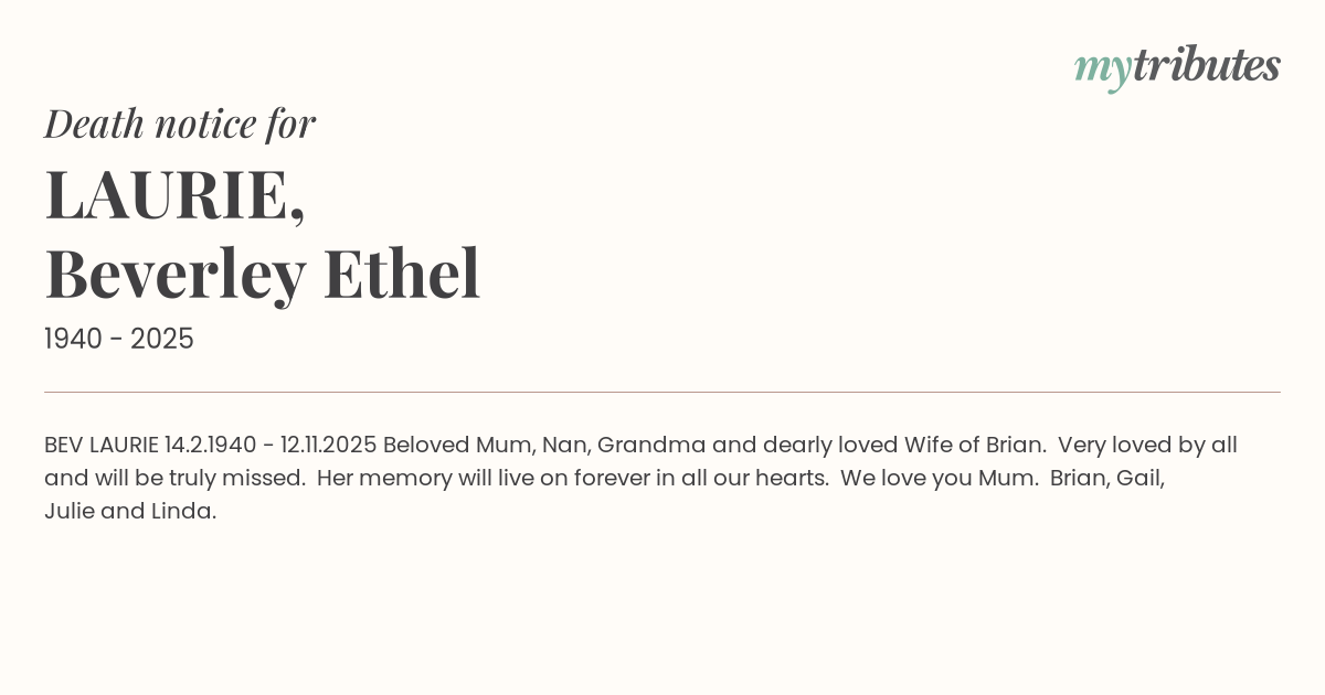 Beloved Mum, Nan, Grandma and dearly loved Wife of Brian.