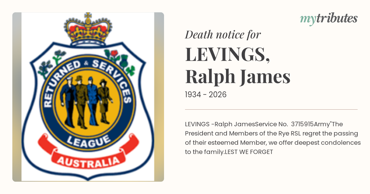 "The President and Members of the Rye RSL regret the passing of their esteemed Member, we offer deepest condolences to the family.