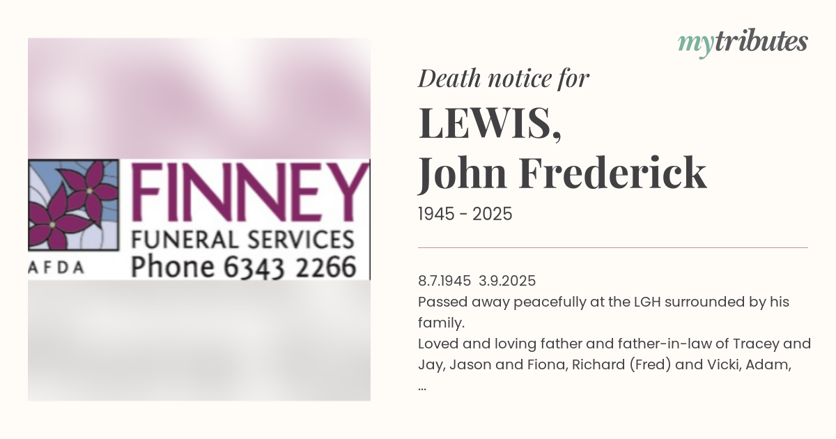 Loved and loving father and father-in-law of Tracey and Jay, Jason and Fiona, Richard (Fred) and Vicki, Adam, and Matthew.