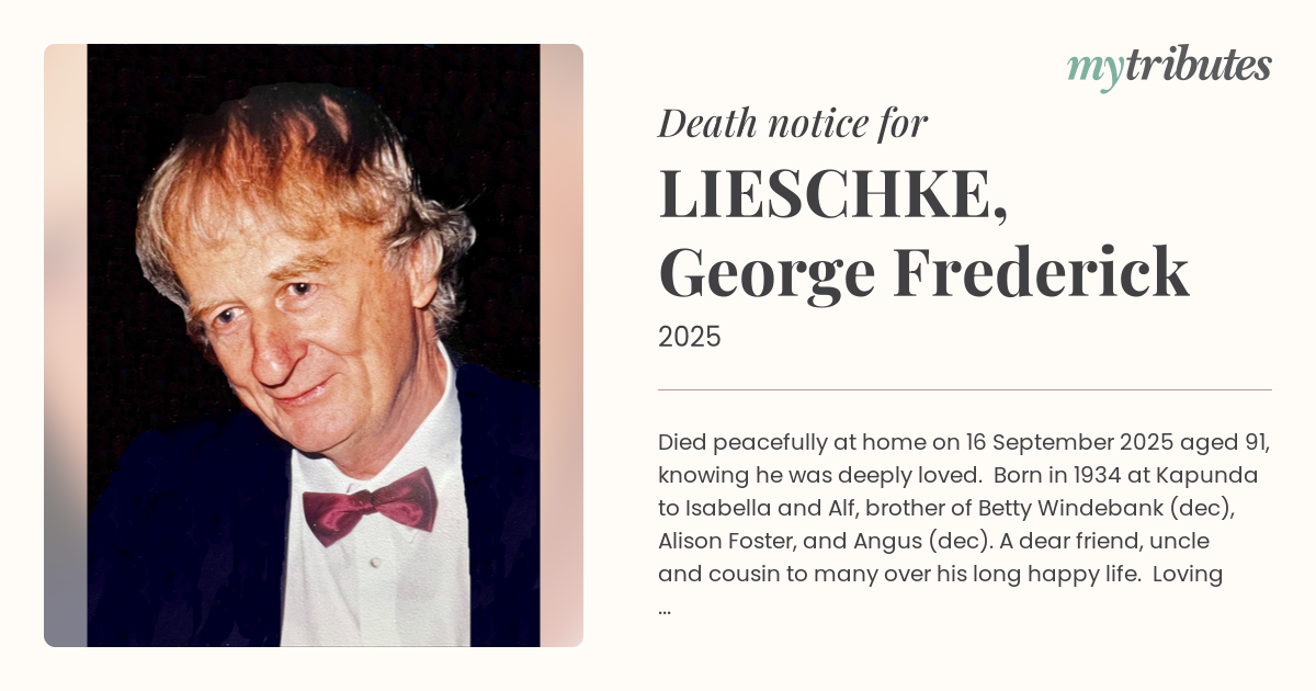 15°CDied peacefully at home on 16 September 2025 aged 91,