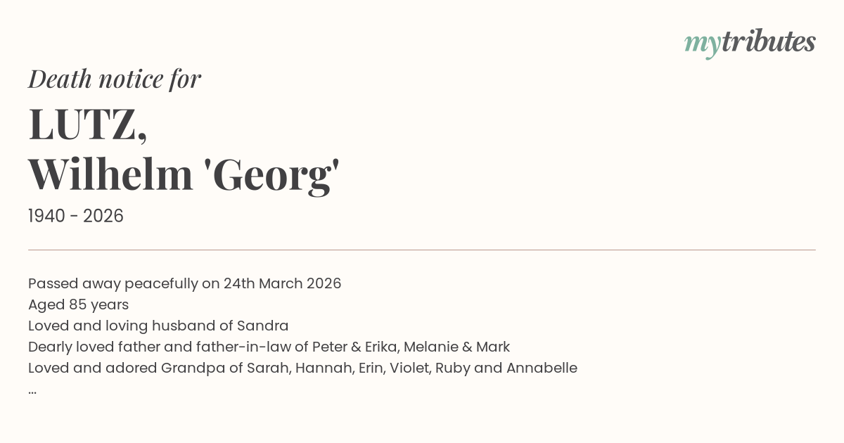 15°CPassed away peacefully on 24th March 2026