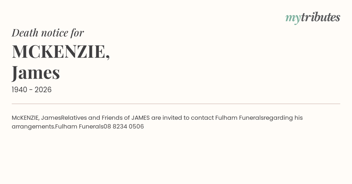 Relatives and Friends of JAMES are invited to contact