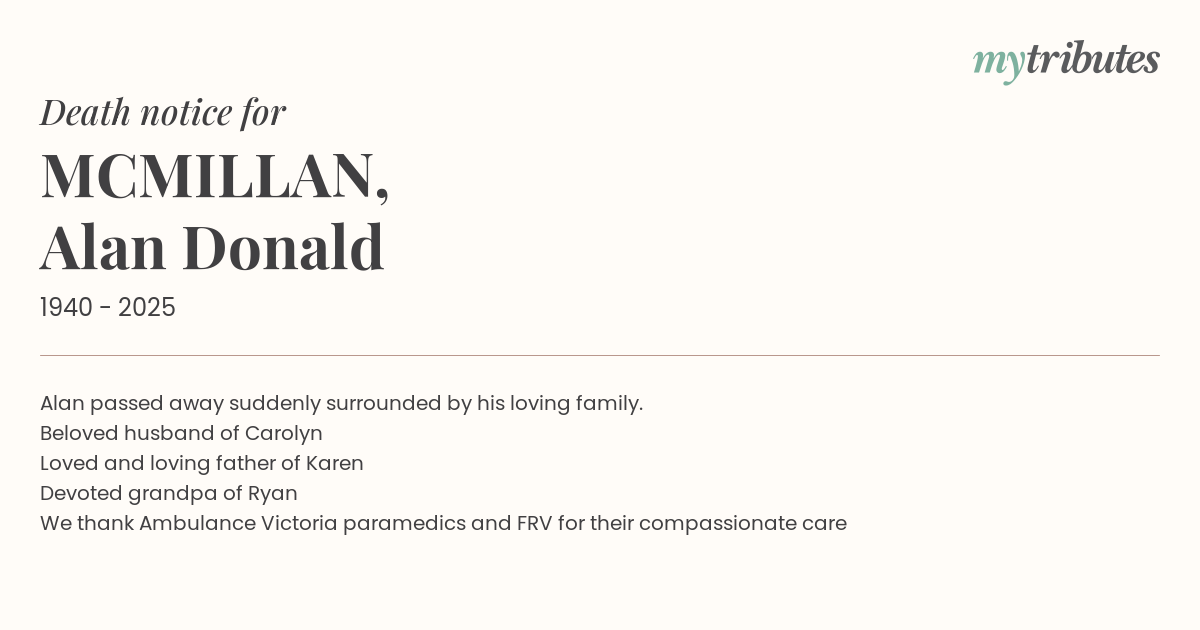 15°CAlan passed away suddenly surrounded by his loving family.