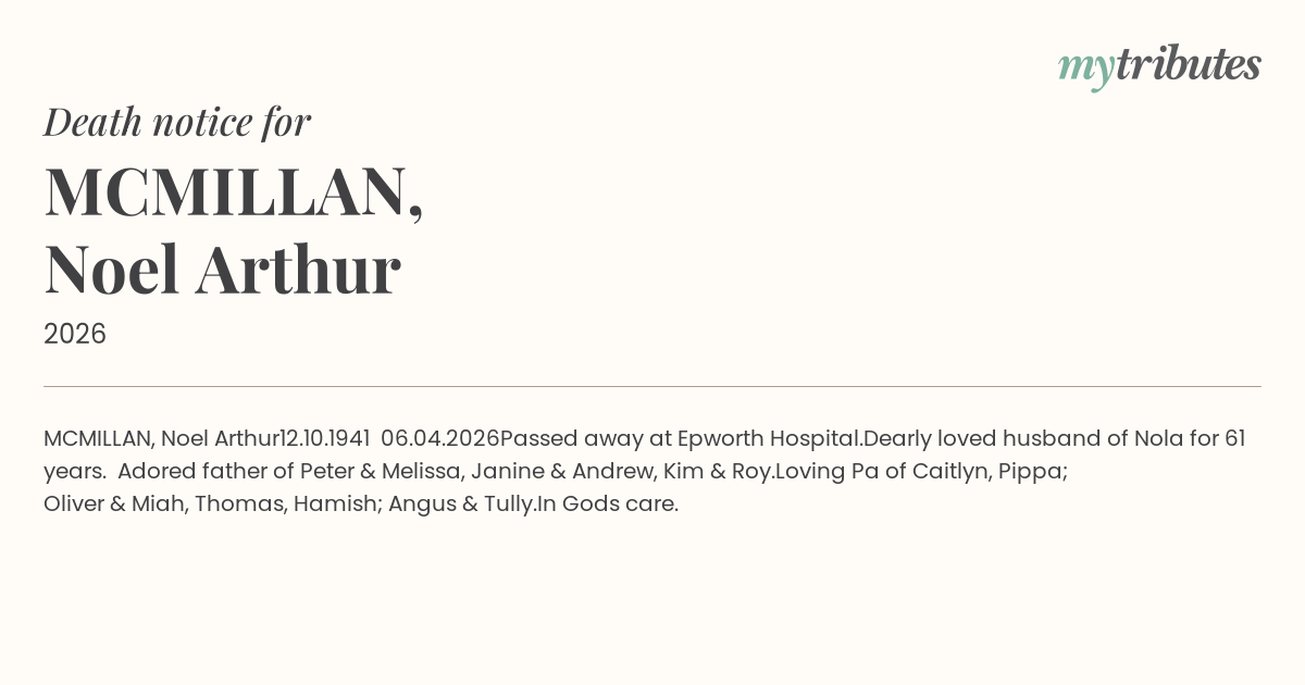Adored father of Peter & Melissa, Janine & Andrew, Kim & Roy.