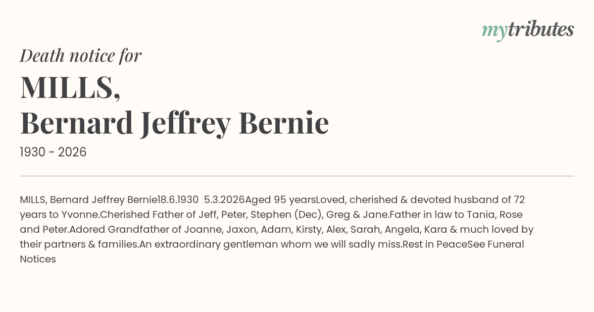 15°CMILLS, Bernard Jeffrey “Bernie”
