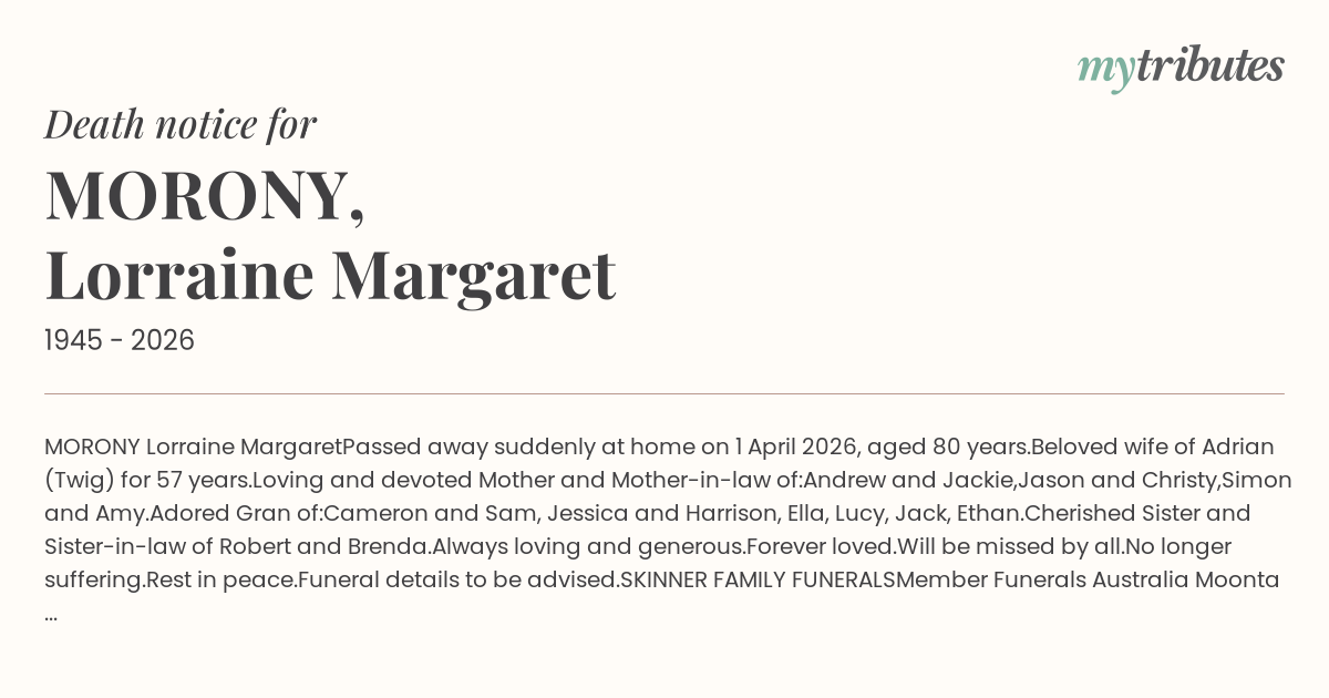 Passed away suddenly at home on 1 April 2026,
