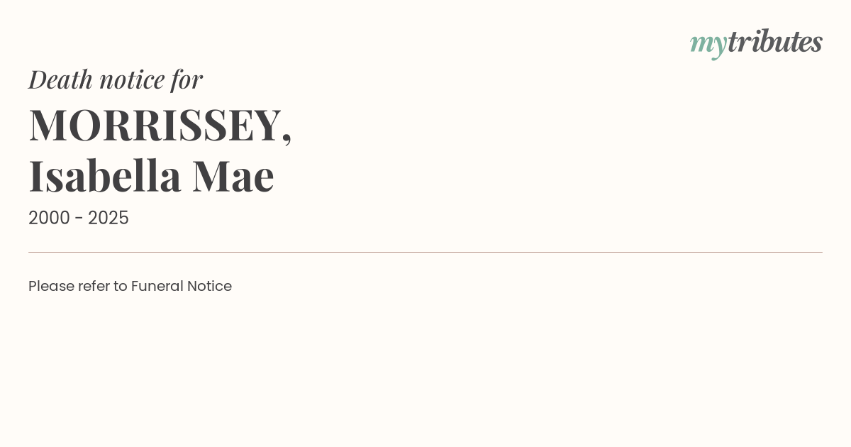 15°CPlease refer to Funeral Notice